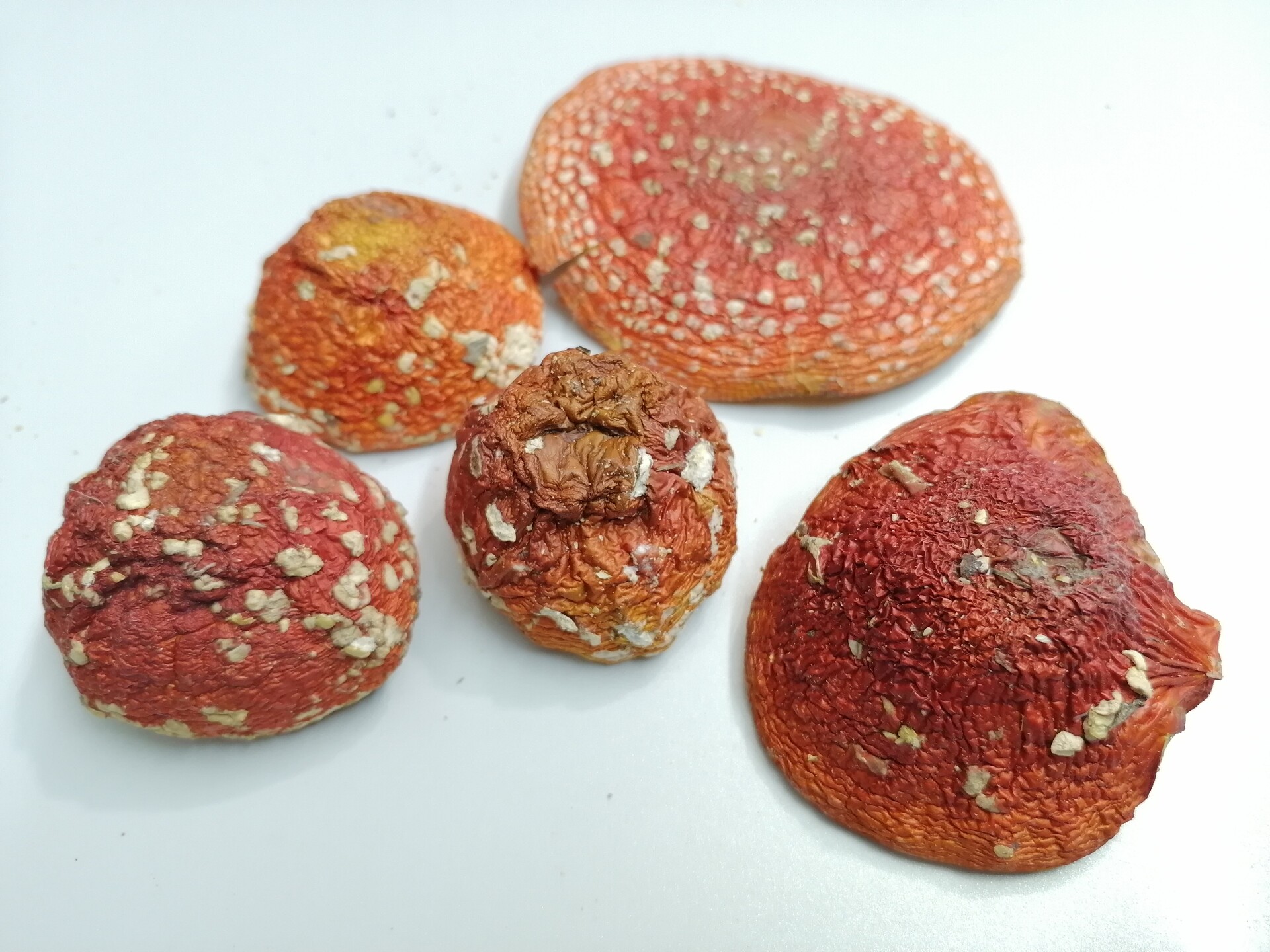 Можно ли есть мухоморы? Да, можно, но только после просушки, выдержки хотя бы 2-3 недели, и естественно нужно соблюдать дозировки. При дозировках более 5 гр Красного Мухомора, вызывает опьянение, а более 15 гр может вызывать трип, галлюцинации. Пантерный Мухомор в 5-6 раз мощнее Красного, 3 гр вызывают опьянение и предтриповое состояние. Рекомендуем принимать Мухомор только для микродозинга!